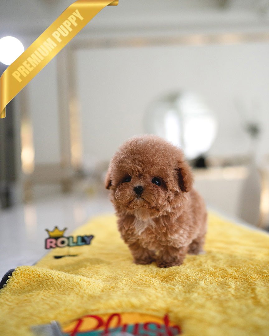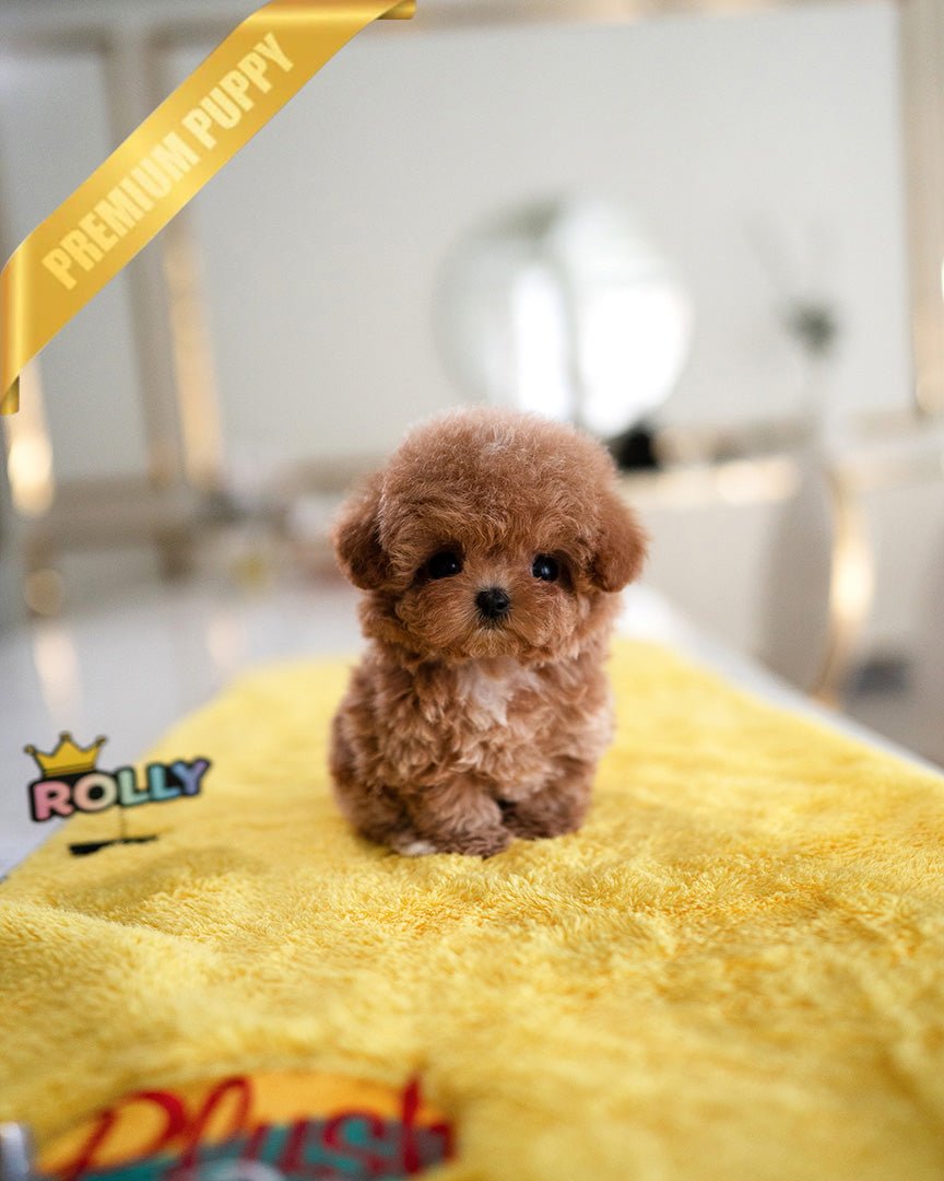 rollypupsofficial.com only uploads the puppy we have on hand. We do NOT use photoshop to visually alter the appearance of the puppy. We are also against using a stock photo to give the wrong impression of the actual puppy you will receive.